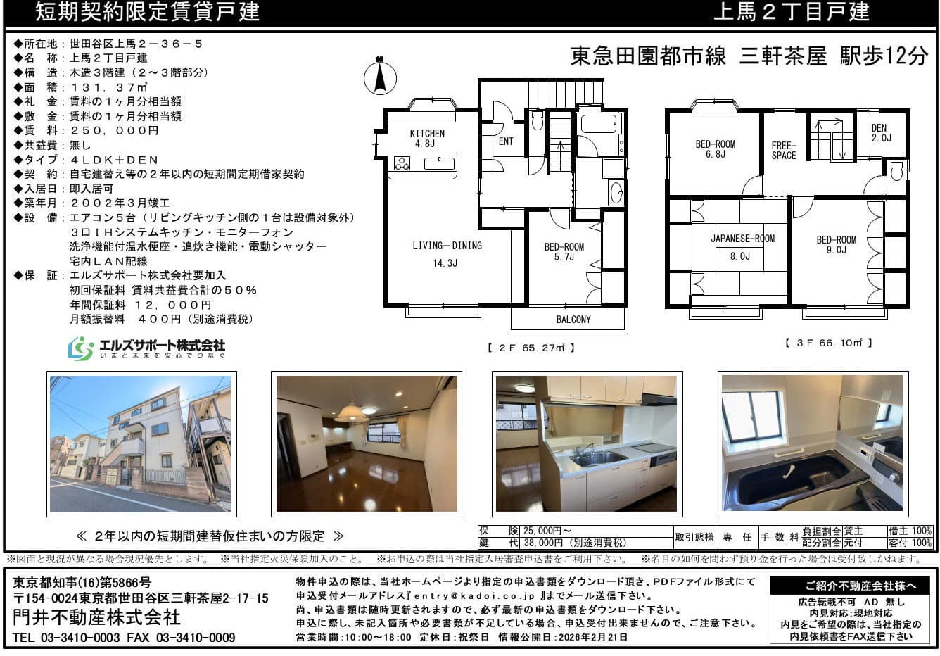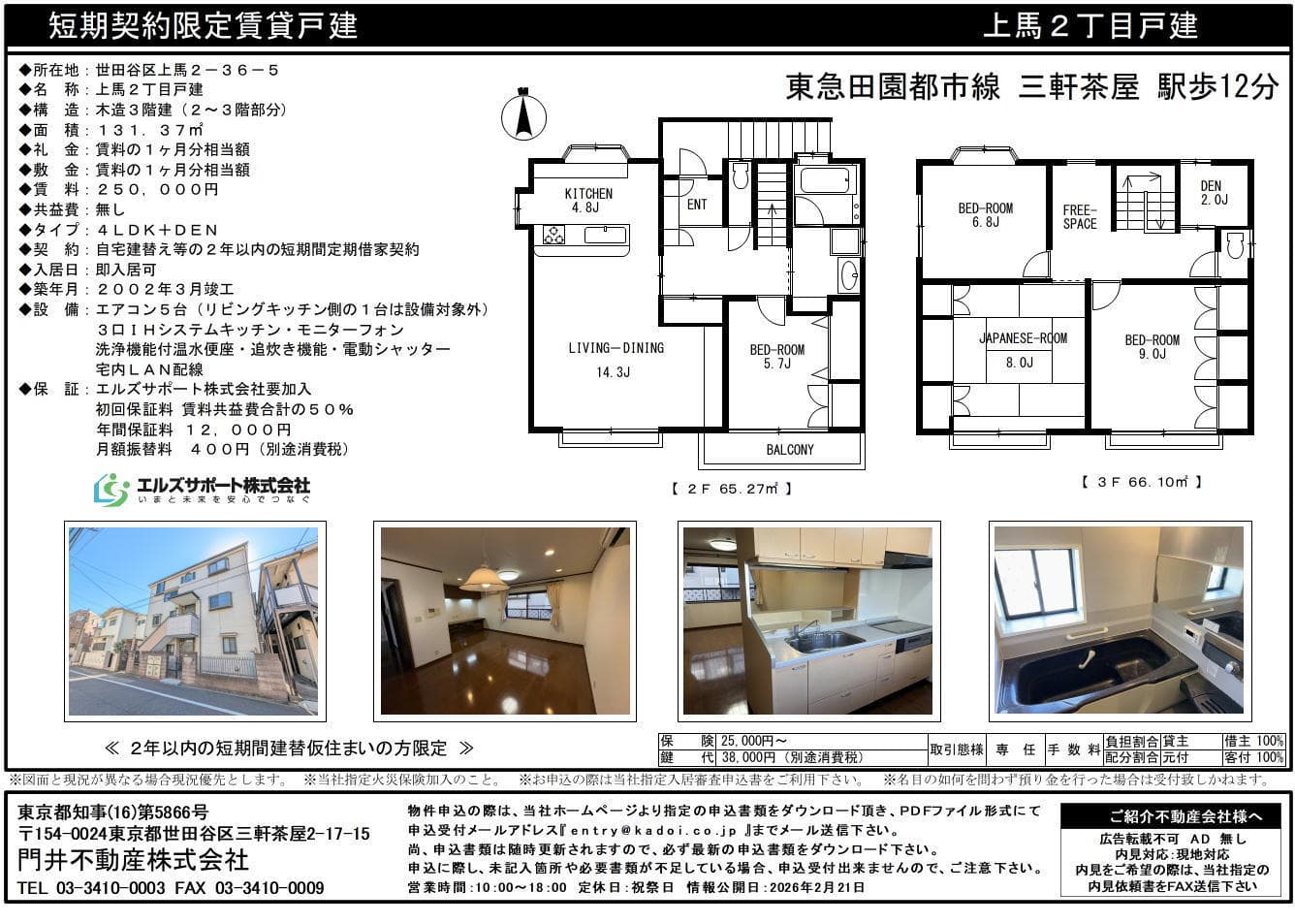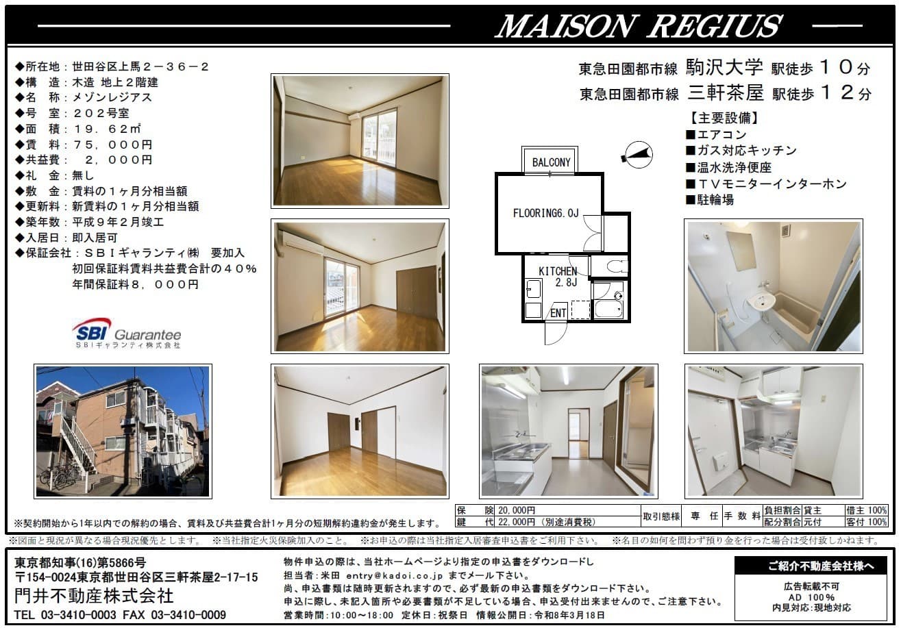 FOR RENT メゾンレジアス202 三軒茶屋駅歩12分 賃料75,000円/管理費等 2,000円 ハイムせら303 三軒茶屋駅歩8分 賃料78,000円/管理費等 5,000円 上馬二丁目戸建(建替限定) 三軒茶屋駅歩12分 賃料250,000円/管理費等 なし 駒沢ハイム408 田園都市線駒沢大学駅歩11分 賃料61,000円/管理費等 なし 門井不動産株式会社 TEL:03-3410-0003 FAX:03-3410-0009 営業時間:10時から18時まで 定休日:祝日・夏季・年末年始 仲介会社様向け(内見申込書・各種申込書) 契約者様向け(解約・更新のご案内) About us お問い合わせ 会社情報 プライバシーポリシー
